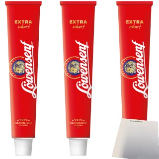 Löwensenf Extra scharf Senf 3er Pack (3x100ml Tube) + usy Block