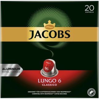 Jacobs Lungo 6 Classico 20 Kaffeekapseln für Nespresso (104g Packung)