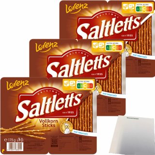 Lorenz Saltletts Sticks Vollkorn Salzstangen mit Meersalz 3er Pack (3x175g Packung) + usy Block