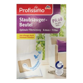 Profissimo Staubsauger-Beutel PR60 für AGE, Volta,...Optimale Filterleistung (4 St + 1 Filler Packung)