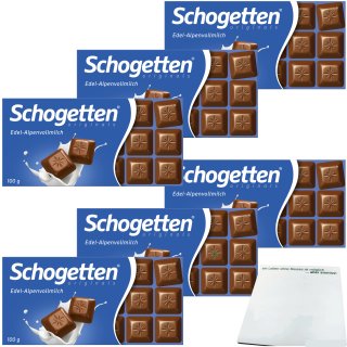 Schogetten Edel-Alpenvollmilch Schokolade 6er Pack (6x100g Packung) + usy Block